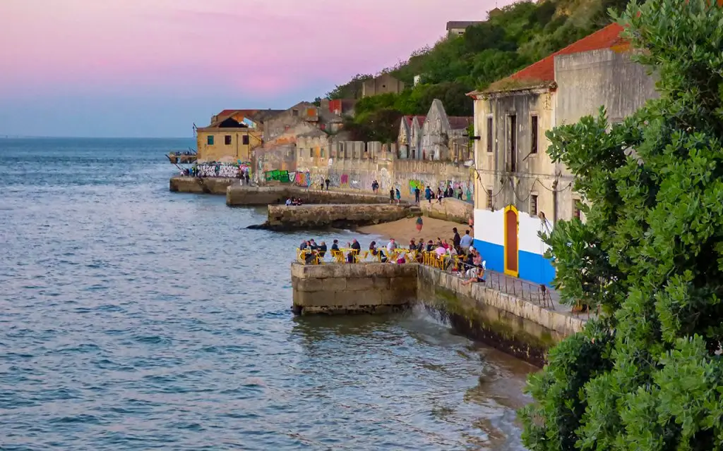Comme une impression d’être arrivé au bout de la jetée, le petit restaurant, Ponto Final, offre une des plus belles vues pour apprécier un couché de soleil sur Lisbonne.