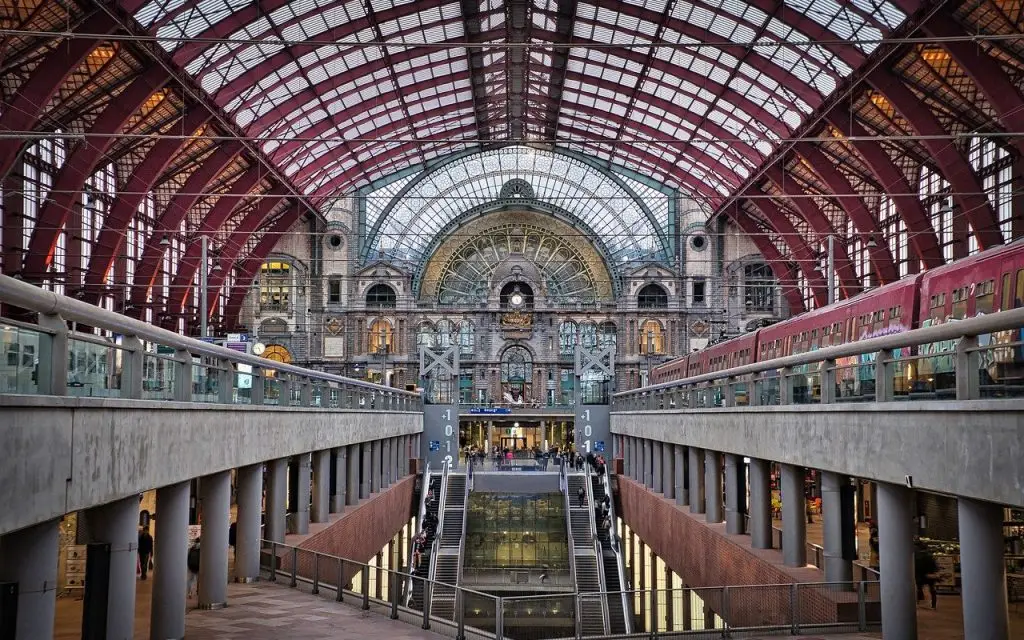 On reste dans la ville de Anvers mais cette fois on va découvrir un bâtiment qui a été mis en service en 1899. Il s’agit de la gare centrale d’Anvers avec son style art nouveau et son imposante structure métallique couvrant les quais.